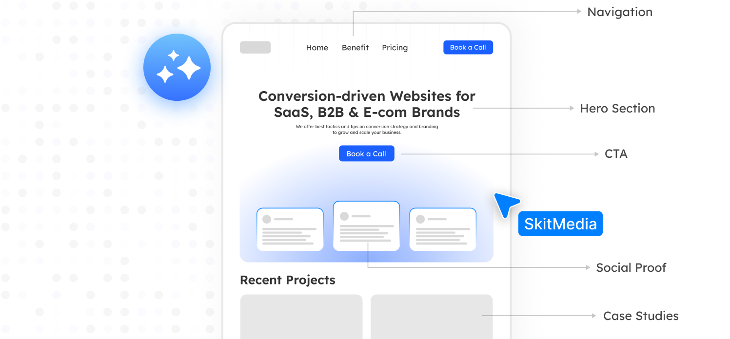It’s from “skit” — short, smart, impactful storytelling. That’s what our websites do too.