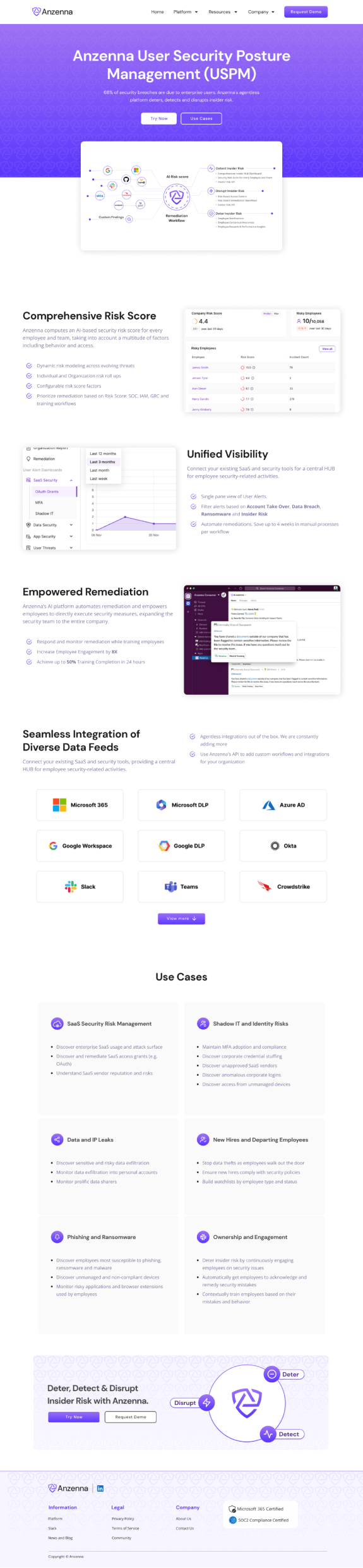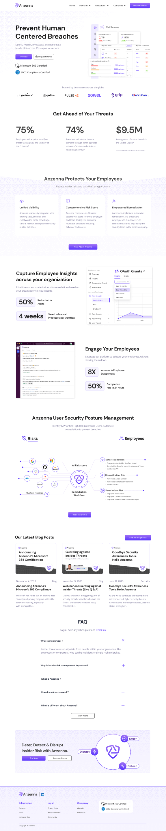 Anzenna addresses the $9.5M average cost of insider breaches with insights and quick fixes. We crafted their brand identity, website, and improved product usability for better risk management.