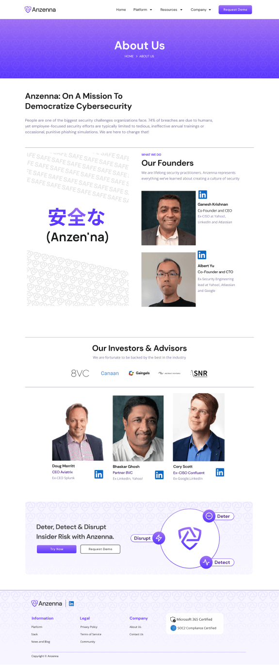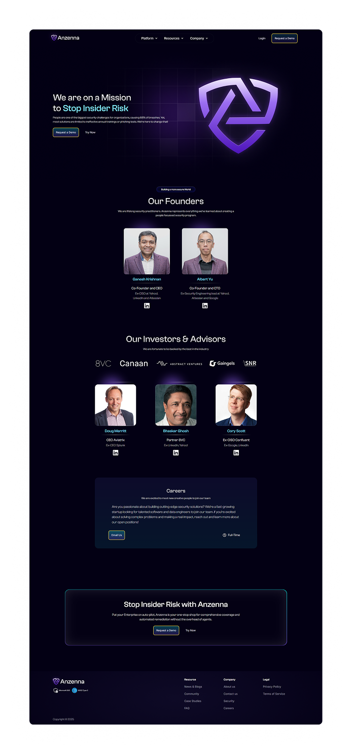 Initially burdened by underperforming branding and a confusing product interface, Anzenna now boasts a streamlined identity, a lead-optimizing website, and a refined platform that addresses insider threats head-on.