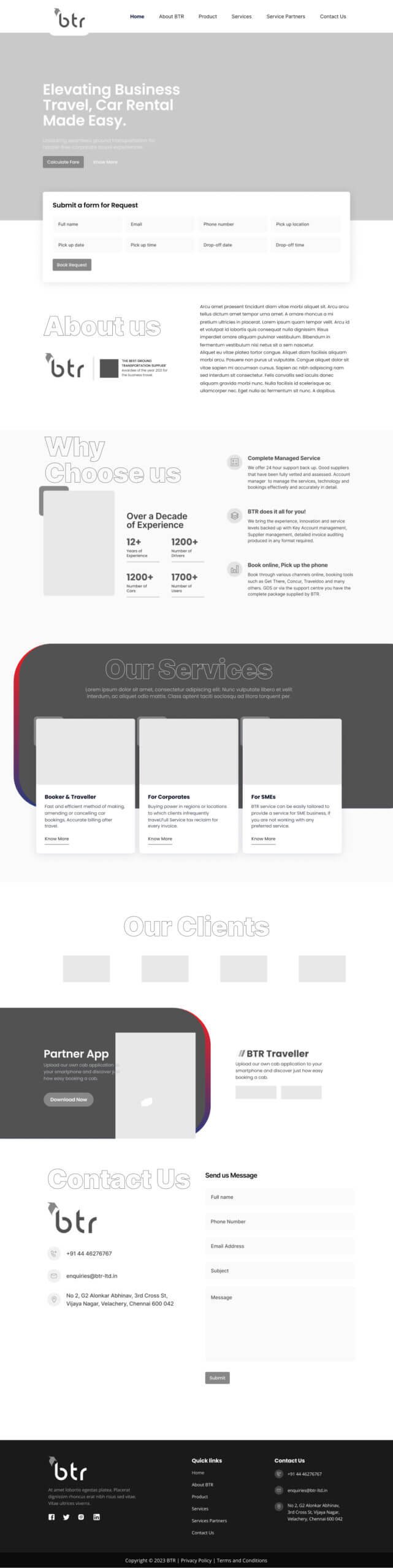 Previously constrained by an outdated site lacking engagement, BTR now showcases a sleek, mobile-optimized presence and a fully integrated web app that emphasizes their wide-ranging services, brand credibility, and user-centric approach.