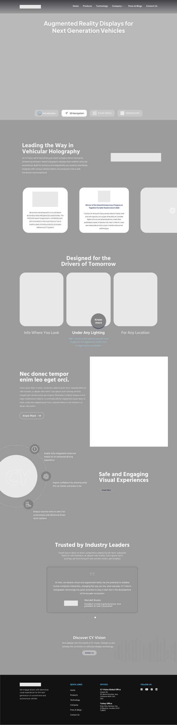 Website identity and 3D HUD visualization combined, spotlighting Cyvision’s AR innovations and revolutionizing how users perceive automotive displays.