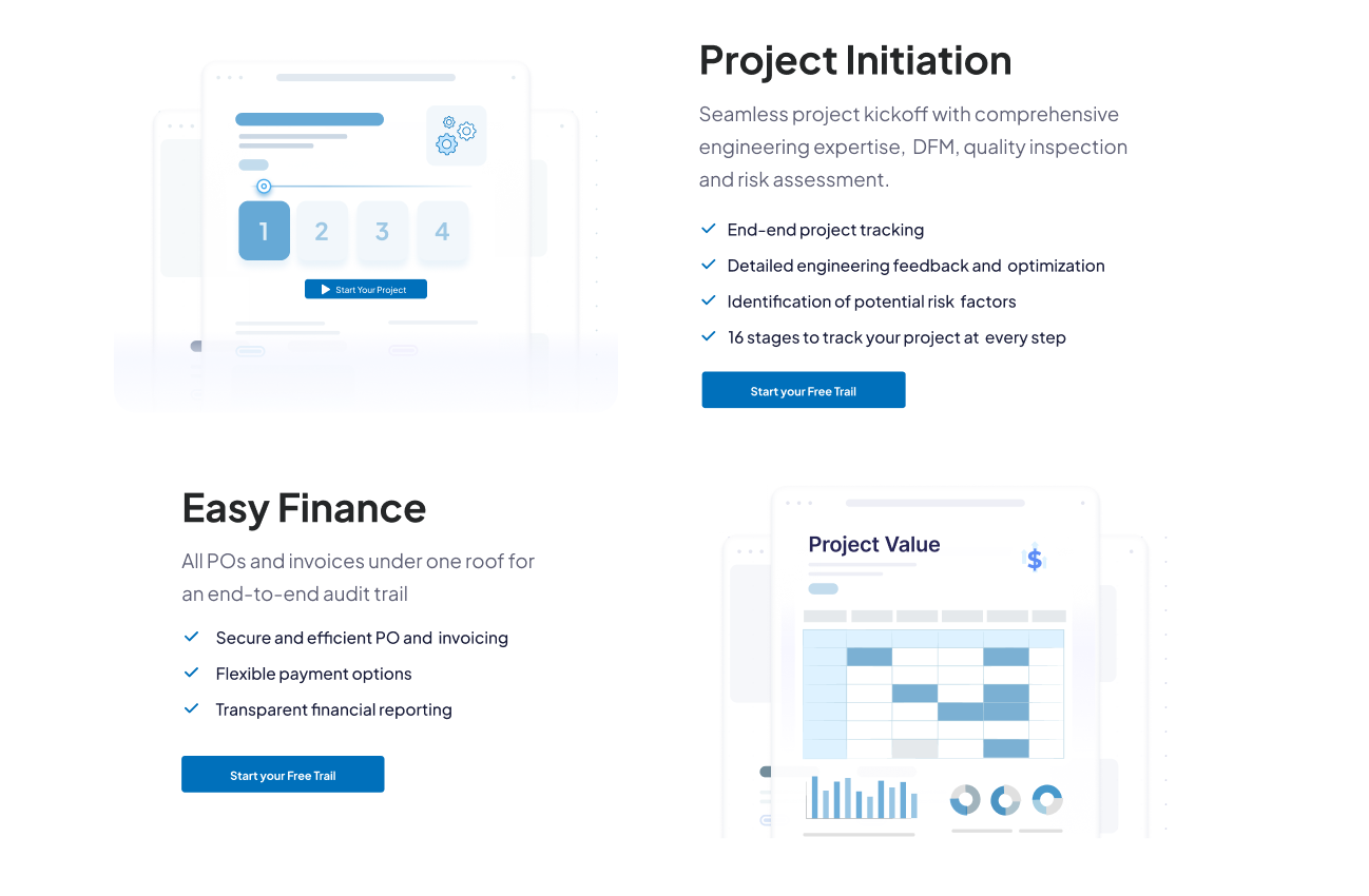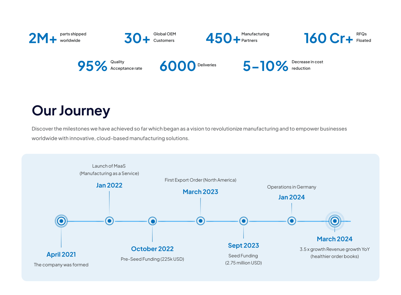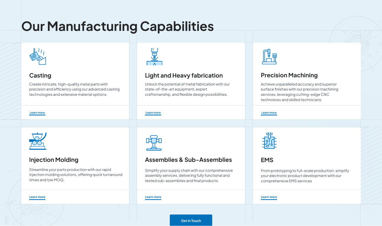 Following the brand definition, we engineered a high-converting website designed to turn complex industrial services into a seamless user experience. We prioritized lead quality by implementing a qualifying questionnaire on the main landing page, ensuring only high-intent leads entered the sales funnel. The site uses a clean, “Industrial Blue” aesthetic paired with custom illustrations and animations to make their sophisticated MaaS (Manufacturing as a Service) technology easy for any stakeholder to understand. Today, the site serves as a primary driver of undisclosed high-volume business for the company.